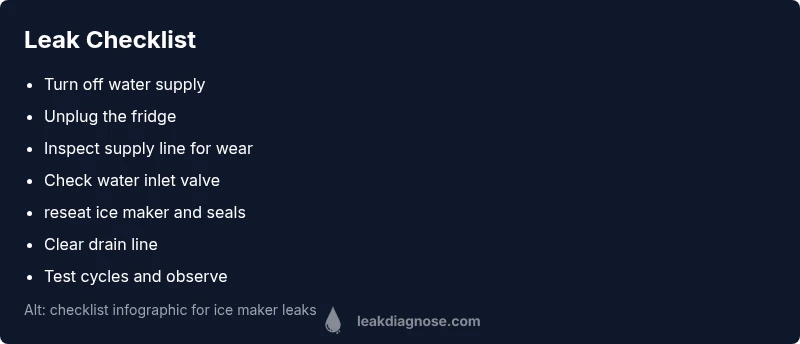 Learn how to diagnose and fix ice maker leaks safely. This guide covers common causes, a diagnostic flow, step-by-step repairs, maintenance tips, and when to call a pro.