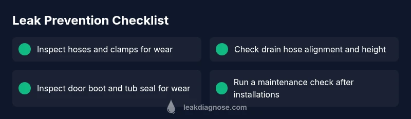 Keep hoses in good condition, check clamps regularly, and schedule routine inspections. Use the right detergent and avoid mineral buildup by flushing the drain pump and inspecting filters.