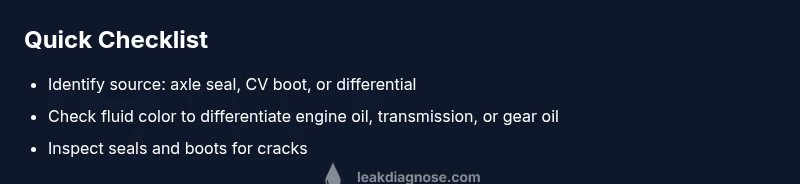 An axle leak is usually caused by a worn axle shaft seal or CV joint seal. For a quick check, look for oil spots under the drive axle, inspect the CV boot for tears, and confirm the drip’s origin at the axle housing. Quick fix: clean the area, replace the leaking seal or boot, and refill with the proper oil; seek a mechanic if the leak persists.
