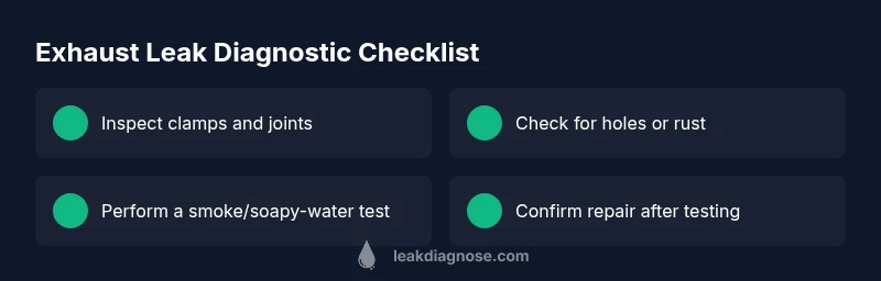 An exhaust leak is most likely caused by a loose clamp or small hole in the exhaust pipe or manifold. Start with a safe visual check and listen for a loud rumble or hissing, especially near joints. Use these steps to diagnose and fix or know when to call a pro.