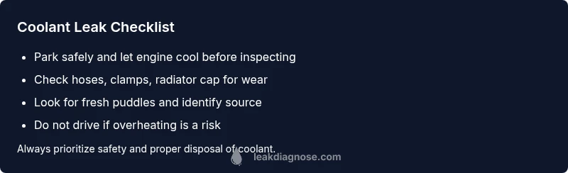 Discover why a coolant leak matters, how to assess risk, and practical steps to diagnose and fix leaks safely. Learn common causes, safety precautions, and when to call a professional.