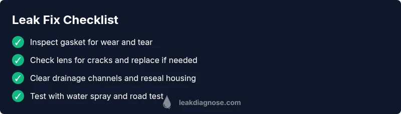 Fix approaches depend on the diagnosed cause. A common, user-friendly fix is resealing the light housing with automotive-grade silicone sealant and replacing a worn gasket. If the gasket is torn or the lens is cracked, replacement of the light assembly is often the best long-term solution. In case drainage channels are clogged, clear them with a flexible brush and ensure the tailgate seal sits correctly. For stubborn leaks, you may need to replace the entire light unit or have the area professionally resealed, especially if there are electrical concerns or persistent moisture inside the housing. Always allow sealant to cure fully before re-testing with water.