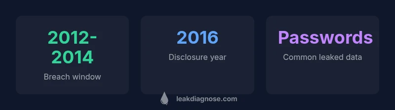 | LinkedIn Breach | 2016 | 2012-2013 | Passwords exposed; disclosure year 2016 |