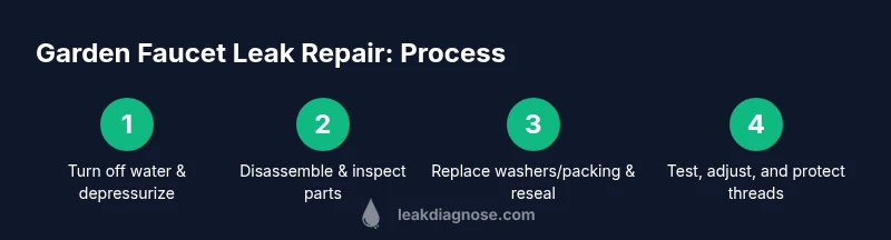 Garden faucet leak repair is a practical DIY task for homeowners. Leaks waste water, raise bills, and can cause rot around the faucet mounting. A small drip from an outdoor spigot can amount to gallons per week if left unaddressed. According to Leak Diagnosis, outdoor faucet leaks are among the most common home plumbing issues reported in 2026; tackling them quickly saves water, reduces wear on your irrigation lines, and extends the life of your faucet. Leaks also invite pests and may lead to water damage near walkways or foundations. Understanding the root cause—loose packing nuts, worn washers, corroded seats, or a damaged stem—helps you choose the right repair path. The question is not whether to fix it, but how to fix it safely and efficiently. This guide focuses on standard compression and frost-free outdoor faucets, plus hose bibs, and differentiates symptoms to guide you toward the correct parts. A methodical approach reduces trial-and-error replacements and minimizes the chance of repeating a leak. Before you begin any repair, verify the shutoff valve is accessible and that the cold weather won't re-freeze recently repaired components.