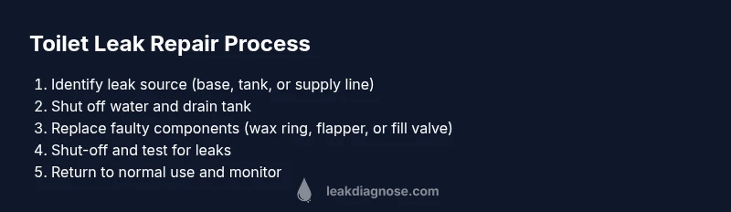 According to Leak Diagnosis, many toilet leaks are slow and invisible, wasting water for weeks or months. A leaking toilet can be signaled by a continuously running fill sound, a damp floor, or a background drip that you notice only after wiping the rim or base. Understanding the typical failure points—flapper seals, fill-valve seals, wax rings, and cracked toilet bowls or tanks—helps homeowners target repairs safely. In this guide we explain how leaks happen, why they matter, and how a methodical approach reduces wasted water, higher utility bills, and potential water damage in living spaces. By approaching the problem with a plan, you increase the odds of a durable fix rather than a quick, temporary patch. This article is designed for homeowners and DIY enthusiasts who want clear, practical steps they can follow, with safety and efficiency in mind. The goal is to empower you to fix uncomplicated leaks yourself or know when it’s time to call a professional.