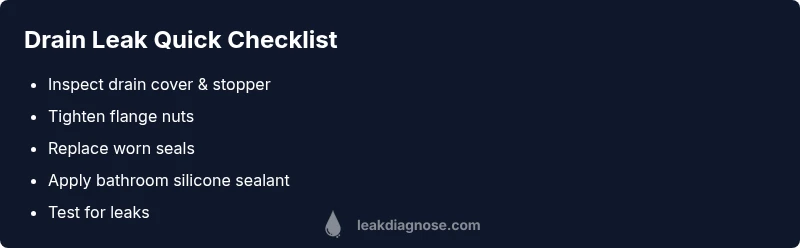 The leak in bathtub drain is most often caused by a worn stopper seal or O-ring around the drain, a loose or corroded drain flange where the drain meets the tub, or a deteriorating overflow gasket that seals the channel from the tub to the wall. Less common but real possibilities include a cracked drain body, damaged silicone seal around the drain, or a misinstalled pop-up stopper mechanism. According to Leak Diagnosis, focusing on the drain flange and stopper seal yields the quickest fixes. If the tub was recently refinished or the drain was replaced, ensure the sealant was applied evenly and cured fully.