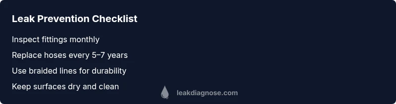 Replace hoses every 5–7 years, ensure clamps are tight, and use protective mats to catch any accidental drips. Regularly inspect hoses for bulges or wear and replace them promptly.