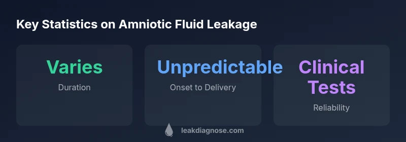Amniotic fluid leakage varies widely and is influenced by when membranes rupture and labor starts. In many pregnancies, leakage lasts from hours to days before delivery, but any ongoing fluid flow warrants prompt medical assessment. According to Leak Diagnosis, distinguishing true amniotic fluid from urine or vaginal secretions is essential for safety—contact your clinician if leakage continues.