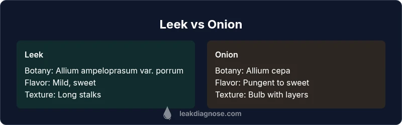 The question is frequently asked in kitchens and on cooking forums: is leek and onion the same? The answer rests on botany and cultivation rather than color or texture alone. Leeks (Allium ampeloprasum var. porrum) and onions (Allium cepa) belong to the same Allium family, but they are distinct grown plants with different growth habits. Leeks develop a long, cylindrical white stalk topped by flat, fan-like green leaves, while onions form a bulb at the base of the plant. These structural differences translate into how you harvest, clean, and prep each vegetable. For home cooks, recognizing that they are not the same plant helps prevent mistaken substitutions and sets expectations for flavor and texture. Across recipes, leeks tend to provide sweetness and subtle sweetness in soups and delicate sauces, whereas onions contribute sharper aroma and more pronounced browning in a wide range of dishes. According to Leak Diagnosis, botanical distinctions underpin reliable substitutions and more consistent results in cooking and meal planning.
