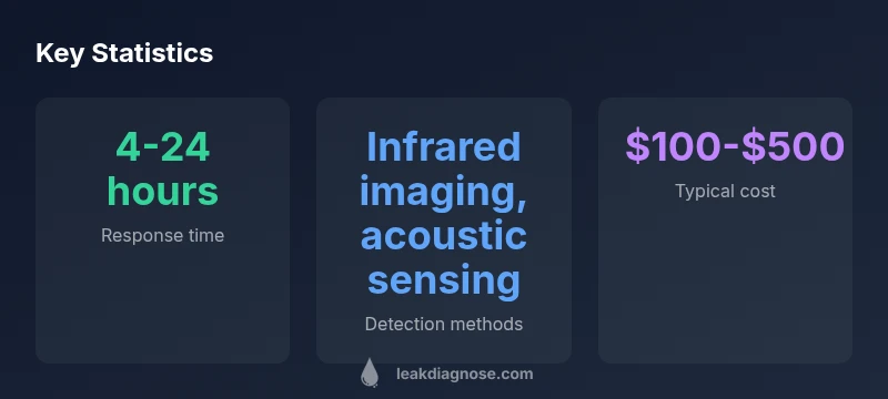 | Residential leak detection | Infrared imaging + acoustic listening | 2-24 hours | $100-$500 |