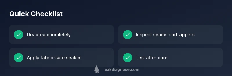 - If seam or zipper gaps are visible, consider a temporary fabric-safe sealant or seam grip applied along the interior seam. Let it cure completely before testing.