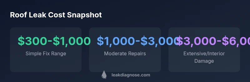 Roof leak costs are not a fixed number; they hinge on several intertwined factors. The price tag reflects the actual scope of work, the materials selected, local labor rates, and whether the leak has caused secondary damage. For many homeowners, the first instinct is to focus on the visible leak, but the true cost picture includes attic moisture, insulation degradation, and potential drywall repair if water has intruded indoors. According to Leak Diagnosis, the price range you see is largely driven by the scope and the region where you live. If the leak is isolated to a shingle or a small flashing issue, the fix may be straightforward and inexpensive. If interior damage is present or the roof requires decking replacement, the project expands quickly. Age and roof type also matter: asphalt shingles tend to be cheaper to repair than metal or tile, which require specialized parts and installation techniques. Accessibility plays a role as well: steep pitches, multi-story houses, or roofs with tight access increase labor time and safety costs. Finally, hidden issues like rotten decking or mold can surprise even experienced contractors, which is why early inspection and a clear scope are essential to avoid overpaying and delays.